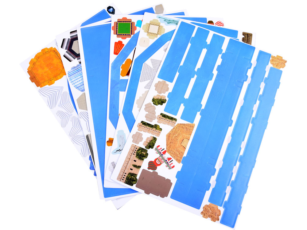 Zestaw składa się z 136 elementów. Poszczególne elementy puzzli umieszczone są arkuszach wykonanych ze specjalnego kartonika.