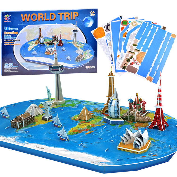 Na ułożonej mapie odnajdziemy takie budowle jak: Wieżę Eiffla, Operę w Sydney, Statuę Wolności i wiele innych.