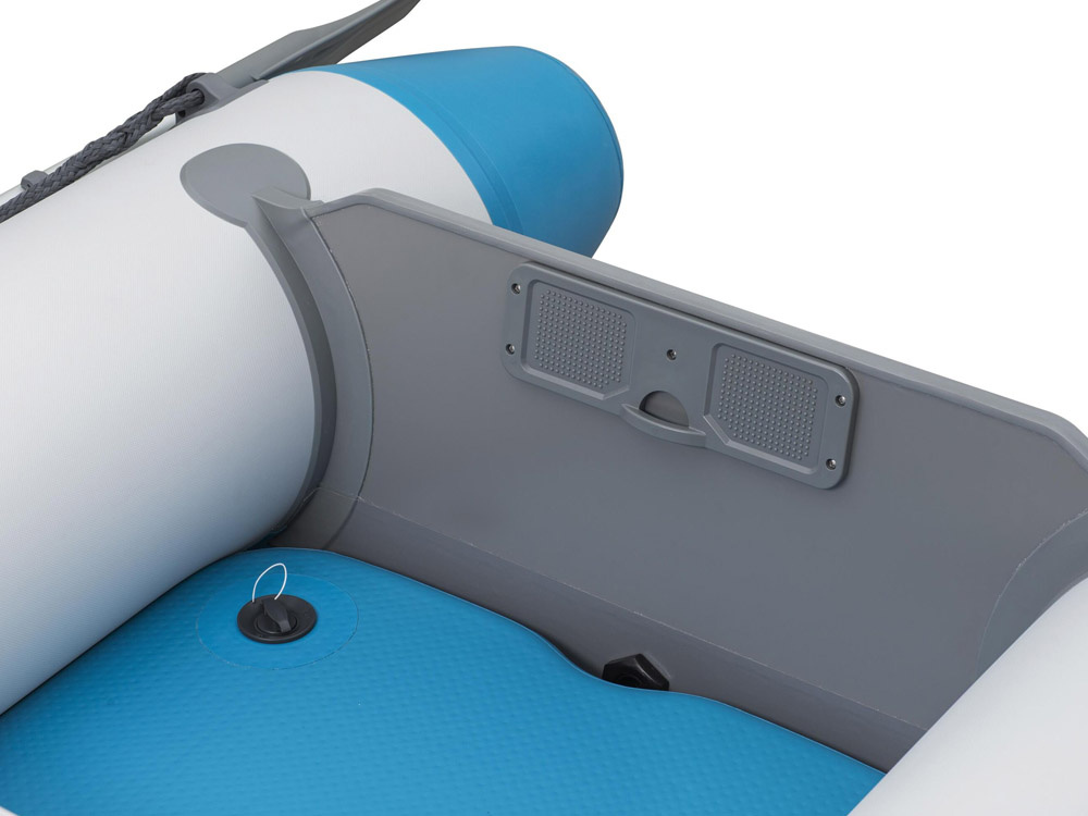The Caspian dinghy was made of high quality previously tested materials. Used in a super-strong pontoon, high-density PVC reinforced with terylene and a structure subject to quality control, guarantee a safe and reliable use. The PVC material from which the pontoon is made is characterized by its resistance to sunlight and the extra strong bumper protects against impact and friction. Inflatable floor made of drop stitch material provides unmatched strength and durability. An additional advantage is the stable 3-chamber structure and the transom from ship plywood.