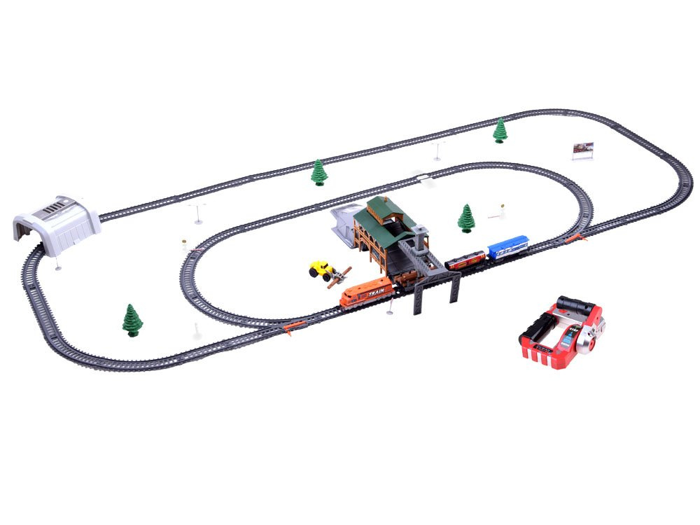 Całą kolejkę napędza nowoczesny pociąg towarowy, do którego można doczepić dołączone w zestawie wagony. Może poruszać się po torze do przodu z 2 prędkościami lub do tyłu z 1 prędkością. Szybkość jest regulowana za pomocą pilota z dźwignią, działającego na podczerwień. Skład kolejowy jest wykonany w całości z plastiku, z dbałością o każdy szczegół, przez co wygląda bardzo realistycznie. Posiada wszystkie niezbędne do zabawy elementy min. tory, znaki drogowe, drzewa, stację przeładunkową oraz pociąg towarowy wraz z różnymi wagonami. Tory posiadają charakterystyczny i łatwy sposób łączenia, dzięki czemu są bezpieczne i wytrzymałe w użytkowaniu. Wagony, które można doczepić do pociągu to: wagon ze zbiornikiem paliwa, osobowy oraz do transportu drewna. Kolejka posiada stację do załadunku oraz rozładunku bali, z zamontowanym chwytakiem oraz samochodem do ich transportu. Elementy rampy pomocne podczas transportu ciężkich bali są ruchome. Taka mnogość elementów, pozwala na niezliczoną ilość kombinacji podczas budowania trasy dla pociągu podczas zabawy.