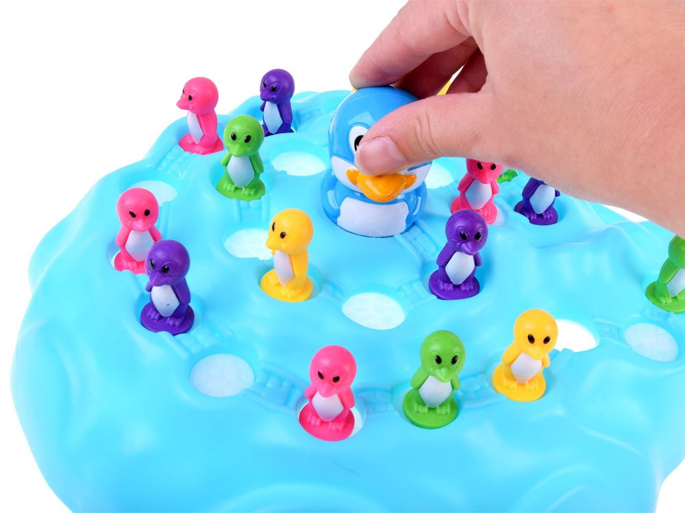 The cards should be placed on the table, after drawing the card, follow the instructions (if you drew a penguin with one step, you move one space, if with two, then two spaces, and if with three, then three spaces).