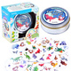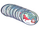 To make it difficult to play, the symbols on the cards are sometimes rotated and have different sizes. The cards themselves are round and full of colorful illustrations, each one unique and connected to the other cards with one and only one symbol.