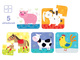 The set includes puzzles with the kids' favorite pets: a horse, a cow, a hen, a pig and a rabbit.