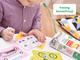 The set is packed in a colorful box with a handy handle, perfect for a gift.