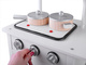 The cooktop includes light and sound effects, imitating real cooking sounds like boiling water. Powered by 2 AAA 1.5V batteries (not included).