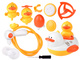 - trzy małe wymienne kaczuszki, które można umieścić na grzbiecie pływającej kaczki uzyskując różne atrakcje wodne (kaczuszka z wiatraczkiem pryska wodą z wiatraczka i dziubka, kaczuszka z dziurkami na czubku głowy pryska wodą z głowy i dziubka, kaczuszka z dziurkami w skrzydełkach pryska wodą ze skrzydełek i dziubka)
