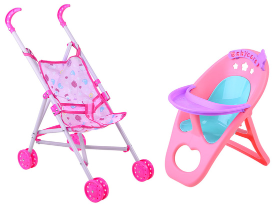 After a nap, it's time for a walk in your favorite stroller. The frame and wheels of the stroller are made of plastic. The charming, light pink material with graphics of hearts, fruits and flowers attracts attention. The stroller is equipped with belts to protect the doll from falling out. It simply consists of the so-called umbrella, so it doesn't take up much space in the room.