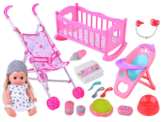 A huge set thanks to which you can fully take care of your baby. The set contains everything needed for everyday care of dolls.