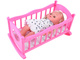 After the meal, it's time for a nap in a comfortable cradle. The cradle frame is made of plastic and the bottom is made of thick cardboard with floral graphics. The pink frame of the cradle is embossed with stars and a moon.