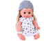 W zestawie znajduje się śliczna lalka o brązowych oczach i długich, blond włosach. Ubrana jest w uroczą, białą sukienkę w kropki. Całość stroju dopełnia szara, cienka czapeczka idealna na spacerki. Oczy lalki zamykają się, dzięki czemu może również spać. Tułów zabawki wykonany jest z plastiku, a głowa, rączki i nóżki z gumy.