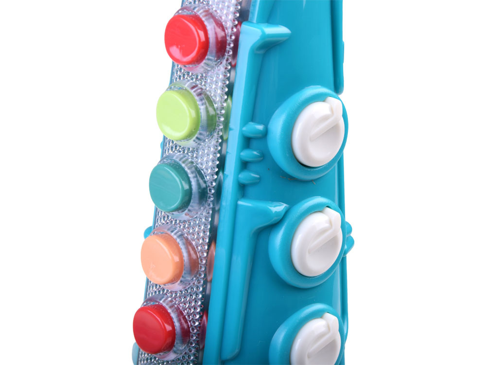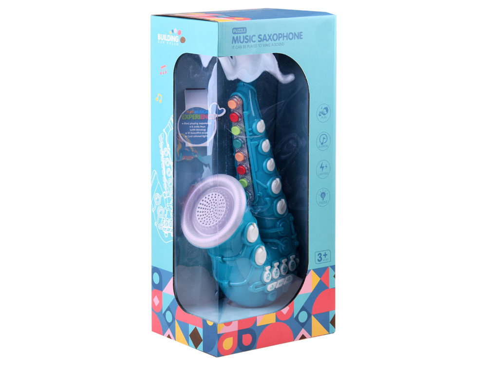 Zabawka wykonana z tworzywa sztucznego w intensywnych kolorach, z dbałością o szczegóły. Saksofon zapakowany w estetyczne, kolorowe pudełko, idealne na prezent.