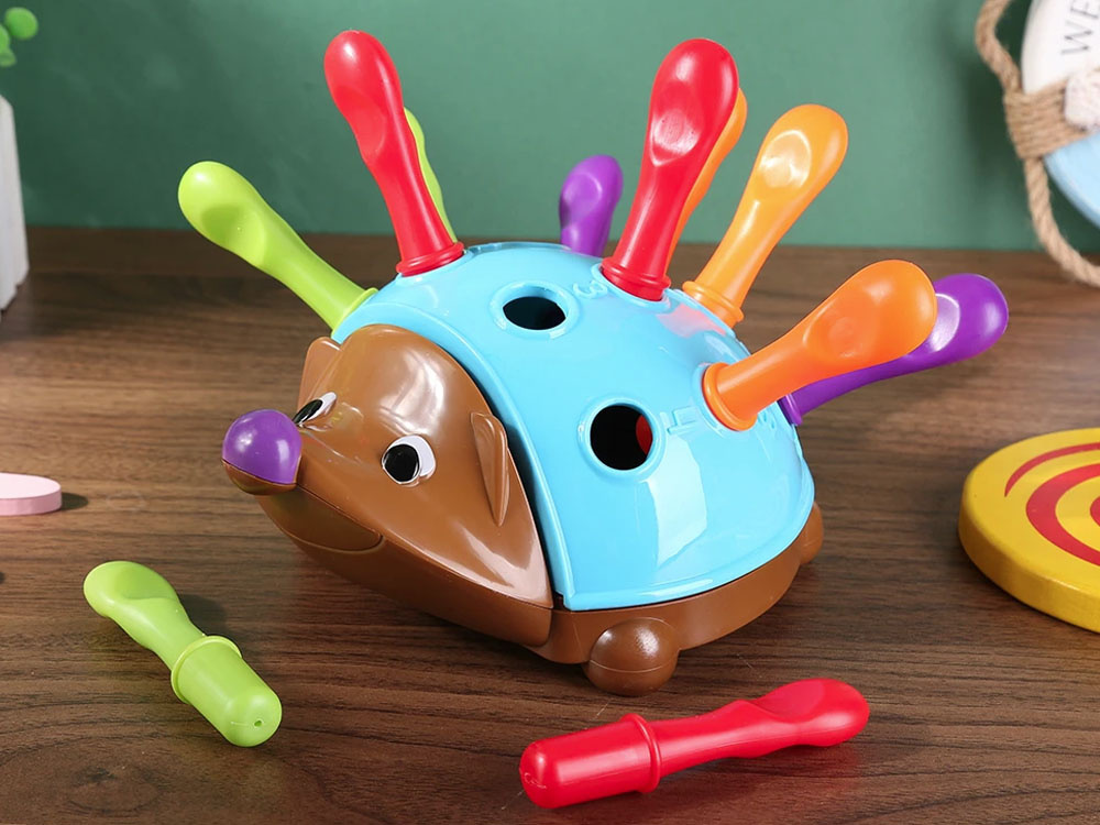 Grzbiet Jeża można zdjąć i ukryć kolce wewnątrz po skończeniu zabawy. Zestaw pomaga maluchom budować koordynację ręka-oko, siłę dłoni i inne niezbędne elementy rozwoju umiejętności motorycznych.