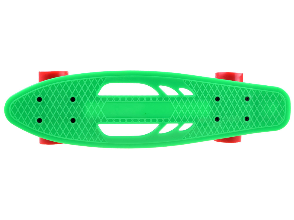 • light skateboard for children up to 50 kg, has an openwork design with cutouts, green skateboard, small