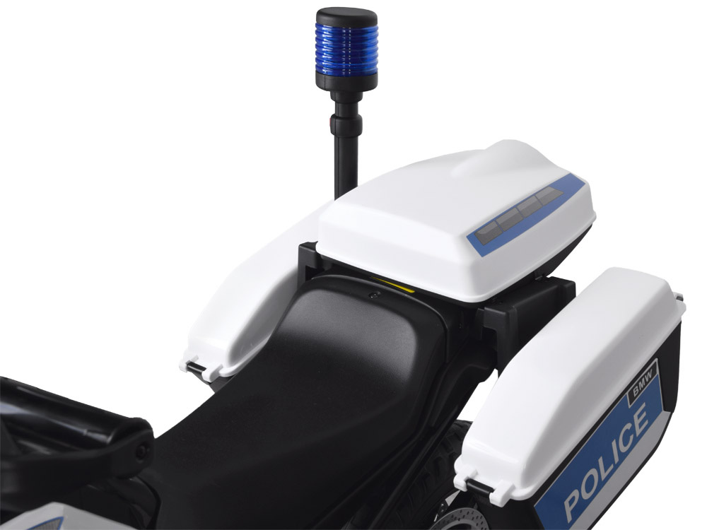 Duży Motocykl na akumulator BMW Policja z kogutem i sakwami to propozycja dla każdego małego stróża prawa. Realistycznie odwzorowany motocykl typu motoru turystyk dla dzieci zapewne zadowoli każdego małego kierowcę jednośladów. Motocykl posiada wszystkie elementy rewelacyjnie odwzorowane jak prawdziwy policyjny motocykl.