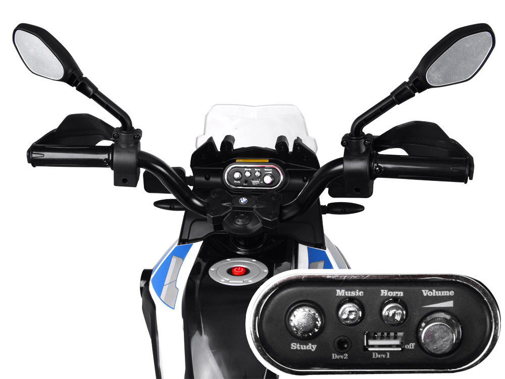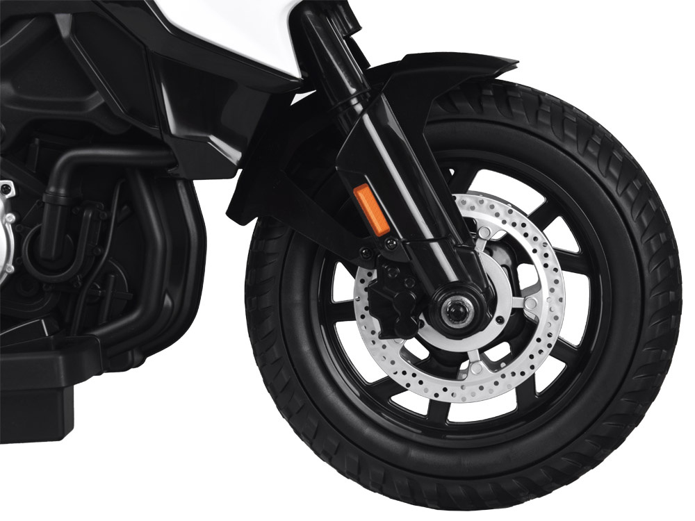 W trakcie jazdy motor świeci światłami, panel muzyczny posiada przyciski, pod którymi kryją się dźwięk wesołych melodii, przyciszanie pogłaśnianie. Niesamowitym atutem pojazdu jest możliwość dokręcenia bocznych kółek, dzięki czemu dziecko z łatwością opanuje jazdę. Profesjonalny policyjny motor to marzenie każdego fana 2 kółek!