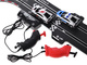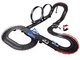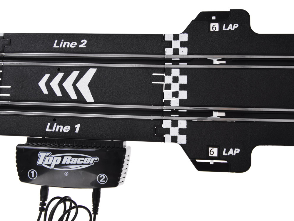 The track is controlled by remote controls with a gas function, which must be connected to a station located on the track. The toy does not require batteries, the vehicles are powered by a power supply.
