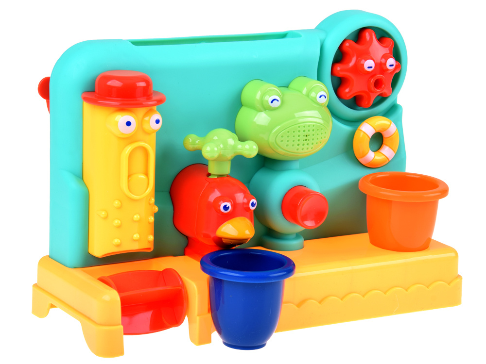 Zabawka jest w formie panelu mocowanego na przyssawkach do płytek w łazience lub ściany wanny. Na panelu znajdziemy cztery różne zabawki, które inaczej reagują na wodę, gwarantując super zabawę podczas kąpieli.