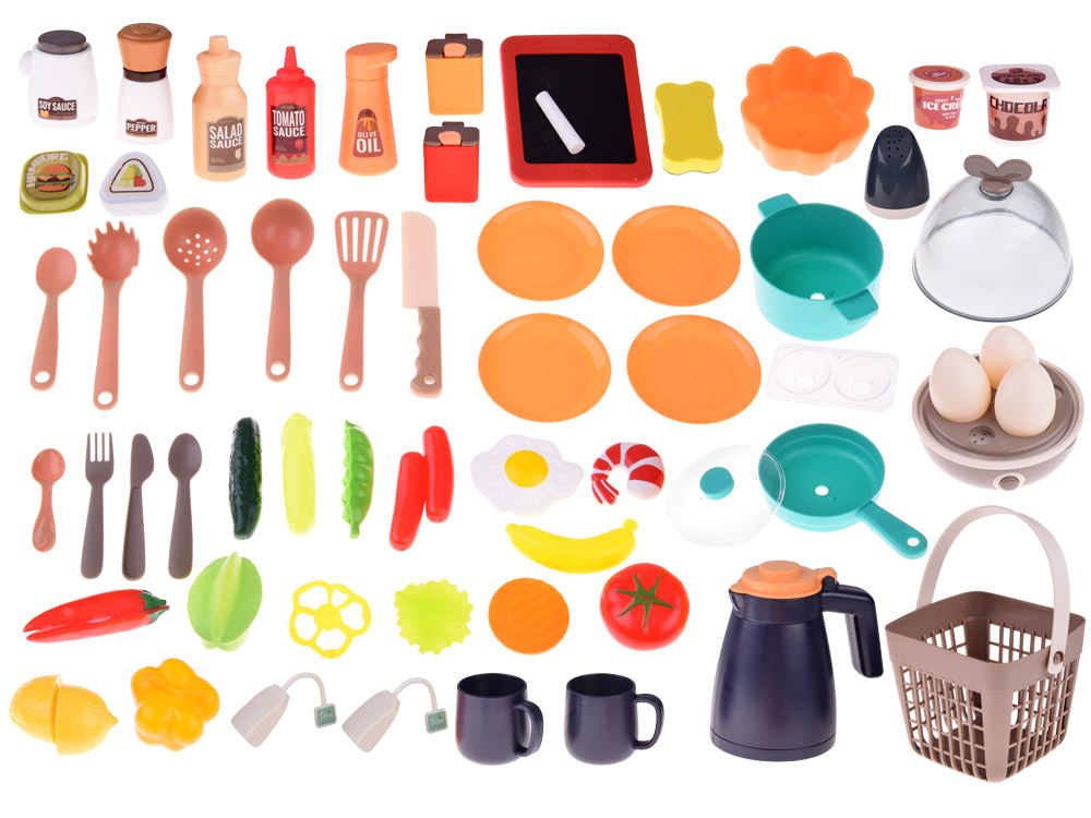 - Woda w kranie - kuchnia posiada kran z wodą. Obieg zamknięty, woda wylatuje z kranu poprzez naciskanie przycisku (pompki), który pozwoli maluchowi na odgrywanie różnych scenek, takich jak gotowanie, zmywanie naczyń czy podlewanie roślin.