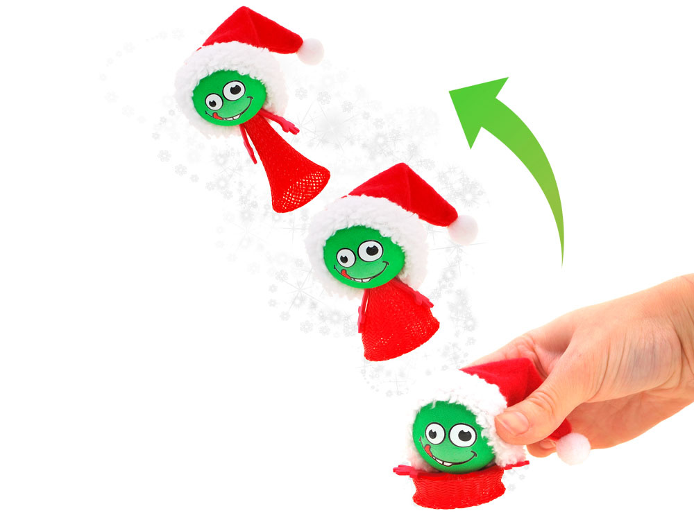 The jumping winter elf is a cheerful spring that will make everyone laugh! The toy looks like a badminton shuttlecock, but it is dressed in a Christmas version.