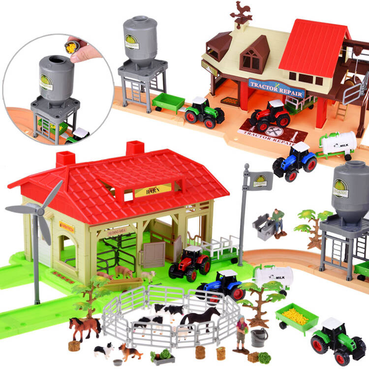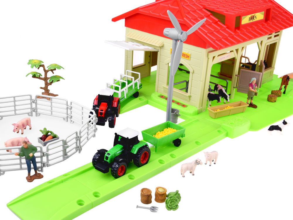 A mega-large farm, well-equipped, and will probably appeal to every little farmer. The set is entirely made of plastic in attractive colors and style. It is equipped with all the necessary accessories needed on the farm. Farm work is difficult and hard, but thanks to the equipment on this farm it will be a pleasure-filled job. The farm equipment includes, among others: three tractors, in three colors, and each of them has its own trailer. The host and hostess have a full enclosure of animals to look after and take care of.