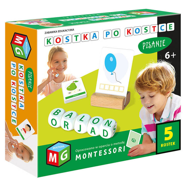 Cube by cube. Writing is a simple educational game for children that helps them learn writing and reading. Use a set of FIVE dice to form three-, four-, five- or six-letter words describing the pictures shown on the cards. A game that will encourage children to recognize letters and build words from them. They help develop vocabulary, practice concentration and quick thinking.