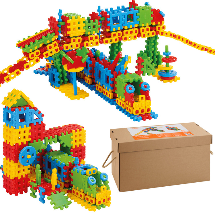 Playing with Marioinex Waffle blocks can be extremely creative and beneficial for the proper development of the child. Set contains: - 433 items Block dimensions: - approx. 22 cm x 10 cm x 1.5 cm The blocks are designed to stimulate the child's developing senses: sight through expressive colors and touch through the original shape. The set is packed in a cardboard box, perfect as a gift and in kindergartens. In the Jokomisiada store you will find a very large selection of blocks for children.