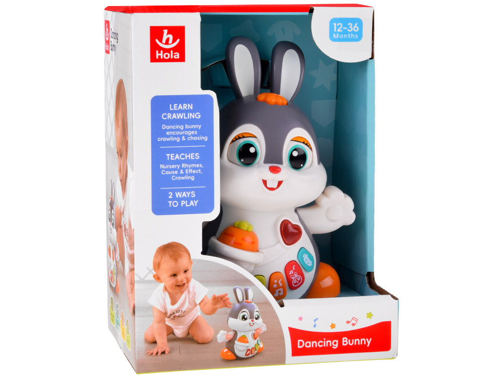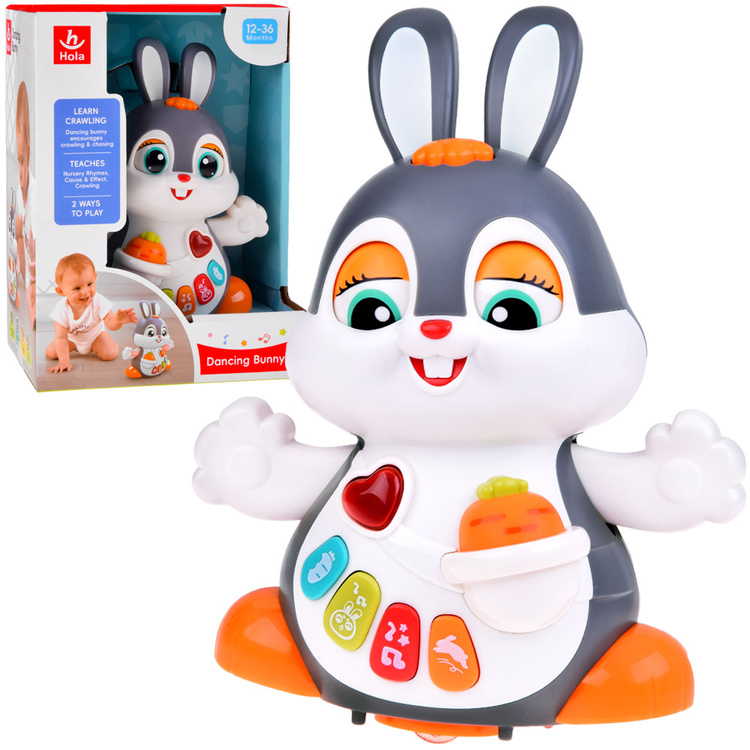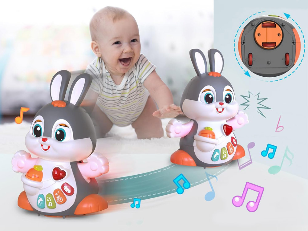 Music and light: The bunny dances to the rhythm of cheerful songs and flashes colorful lights, which stimulates the child's senses and encourages play.