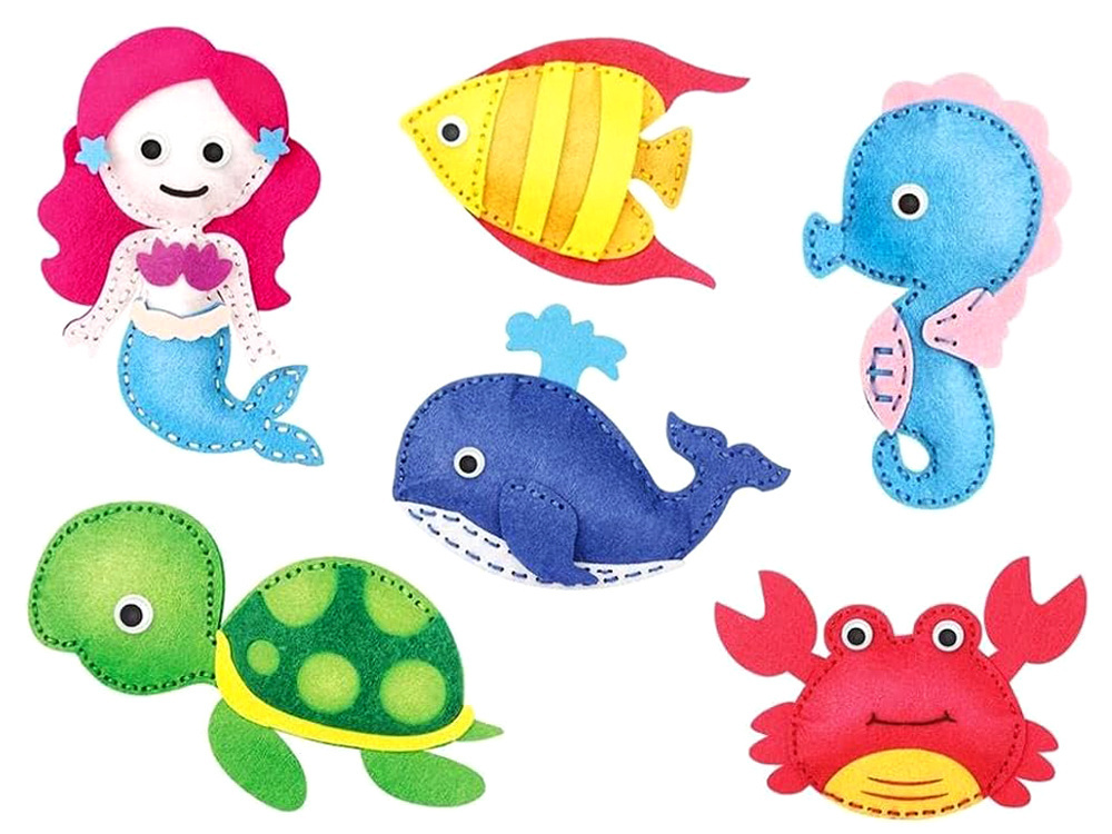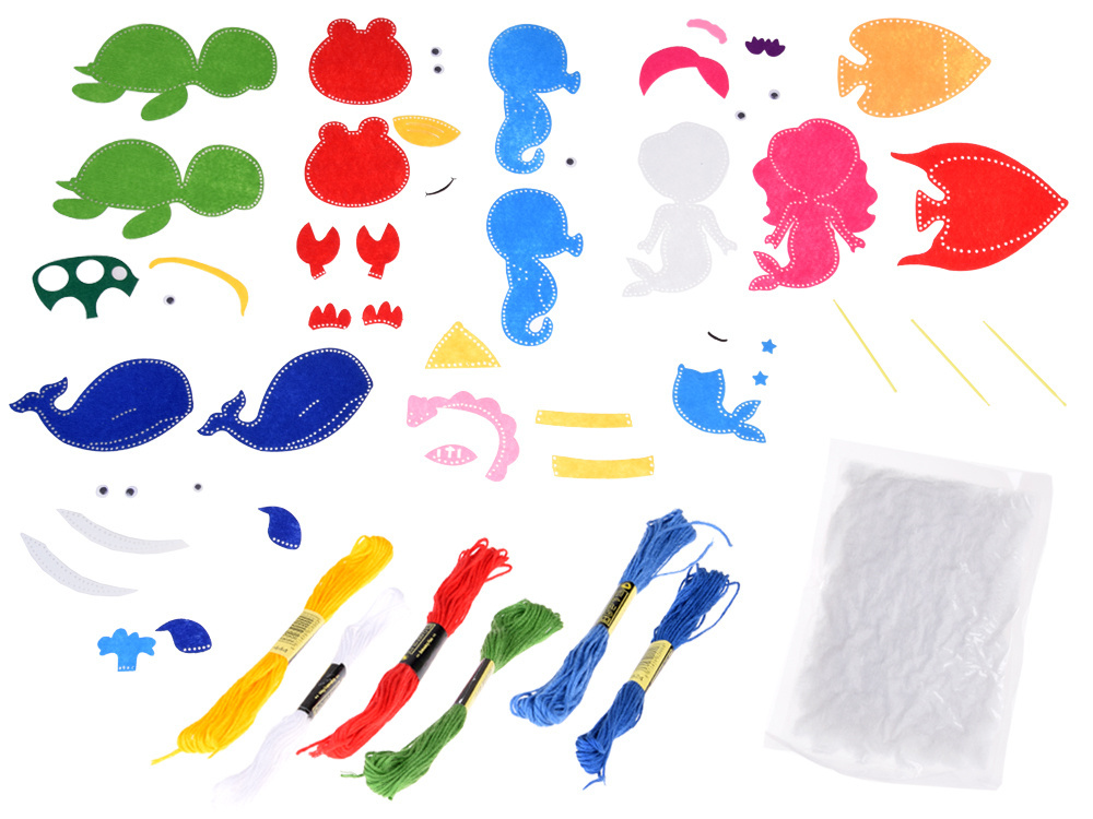 Creative set of sea animals felt sewing set is a set for spending time creatively, during which you can express your manual skills. It will allow you to make your own forest animals. Crocheting has a positive effect on concentration, hand-eye coordination and manual skills. It is also a great alternative to sitting in front of a computer or TV. A handmade mascot is not only a great gift for a loved one, but also a beautiful decoration of a child's room and will certainly be a reason for your child's pride. The perfect set for every child who likes handicrafts and arts and crafts.