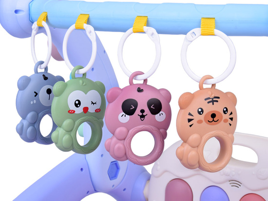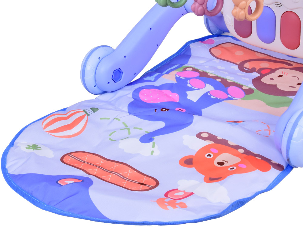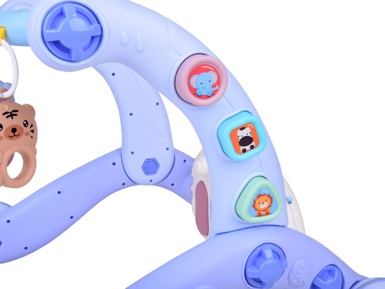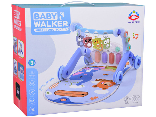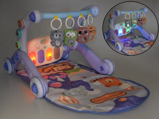Fun and sensory development: Interactive piano with colorful, illuminated keys and melodies develops hearing and creativity, and colorful animal-shaped pendants encourage grasping, strengthening manual skills. The pusher bar is also equipped with a sorter that stimulates the child to play matching shapes with pastel blocks.