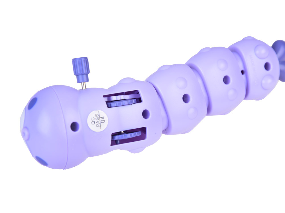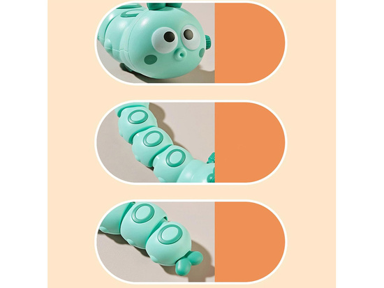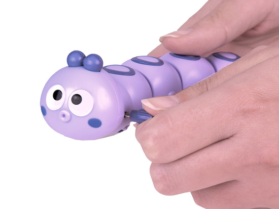 To start the caterpillar, just turn the knob on the side of the toy a few times and then place it on a flat surface. The caterpillar begins to move forward, making energetic movements of the torso from side to side, which additionally diversifies the fun.
