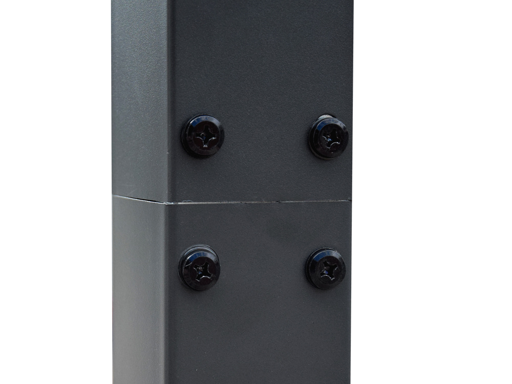 - Structure: Steel frame with 8 closed profiles (sealed with end caps) and tubes; additionally stabilized with diagonal braces