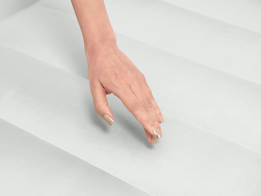 The top surface of the mattress is covered with a soft, flocked material that is pleasant to the touch while remaining resistant to abrasion and damage. The manufacturer used Tough Guard Fortech material, combining the flexibility of PVC with fabric-like durability. As a result, the mattress offers: