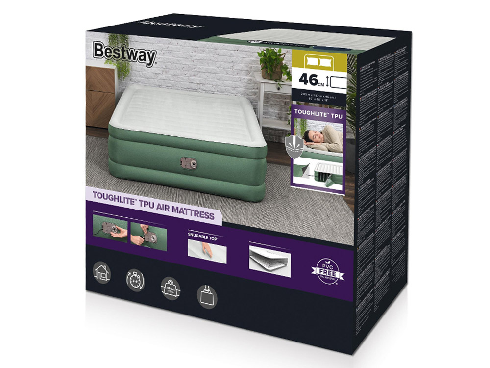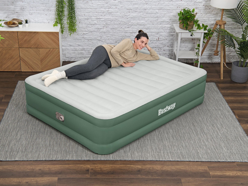 The Bestway air mattress is suitable for both indoor and outdoor use. It is an excellent choice as a temporary bed for guests, a comfortable resting place on the terrace, or a practical solution for camping trips. Thanks to its durable construction, soft surface, and fast inflation system, it guarantees comfortable and healthy sleep in any conditions.