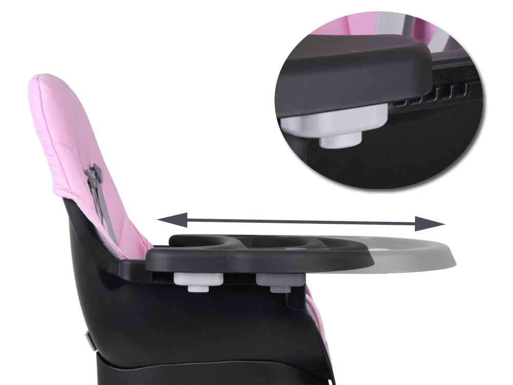 - Dining chair attachment – using the attachment straps, you can securely attach the chair to a standard chair so your child can sit at the table with family, learning the rules of shared dining.