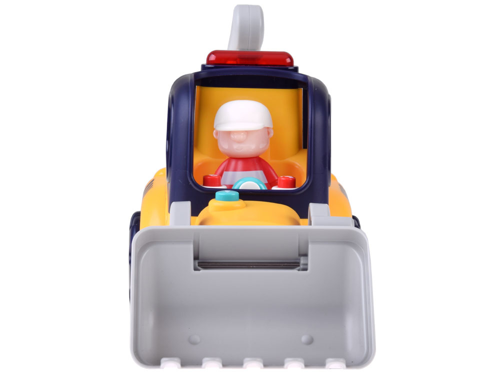 • Łyżka przednia – przesuwaj i ustawiaj ręcznie łyżkę pojazdu, aby uruchomić realistyczne dźwięki pracy silnika i innych elementów, co w pełni imituje funkcjonowanie prawdziwego pojazdu budowlanego.