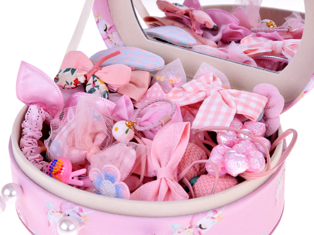 - The handle made of pearls makes the box easy to carry – you can easily take it with you, for example, to a sleepover at a friend's house or to visit grandma to give her a fabulous hairstyle.