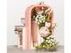 - Theme: wedding boutique/hall with a gown and rich floral decorations