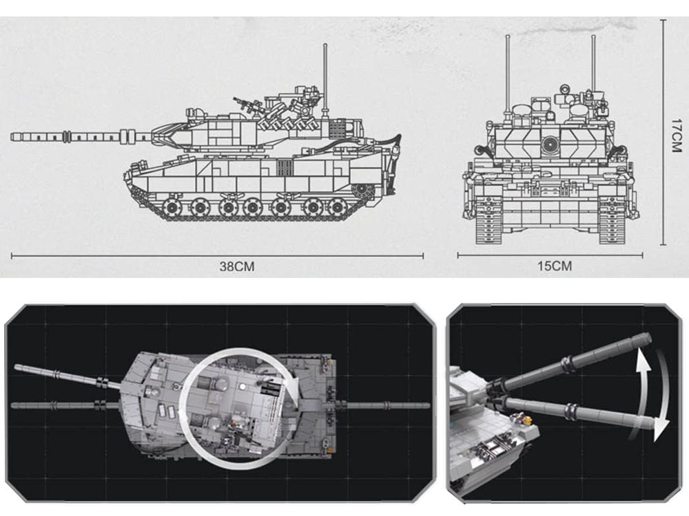 The Leopard 2A7 brick model consisting of 1,498 pieces is an extremely detailed and realistic replica of one of the most modern battle tanks in the world. The original Leopard 2A7, developed in Germany, is currently used by many NATO armies and is renowned for its perfect combination of firepower, armor protection, and mobility in all terrain conditions.