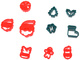 • 10 holiday-themed molds: snowman, gingerbread cookie, reindeer, Santa’s head (large), Santa’s head (small), Christmas wreath, snowflake, Santa’s boot, Christmas tree, mistletoe