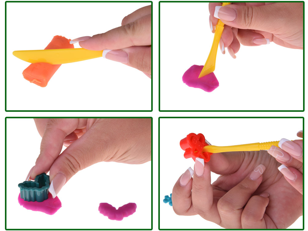 • 6 colorful modeling clays: green, blue, red, purple, yellow, orange