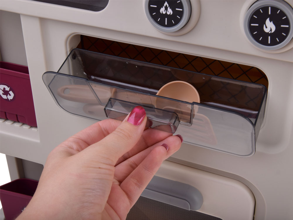 Ta duża, plastikowa kuchnia w jasnych, przyjemnych kolorach to idealne uzupełnienie każdego dziecięcego pokoju lub kącika zabaw. Realistyczne efekty świetlne, dźwiękowe oraz funkcje pozwalają dzieciom poczuć się jak w prawdziwej kuchni, rozwijając przy tym kreatywność i umiejętności kulinarne.