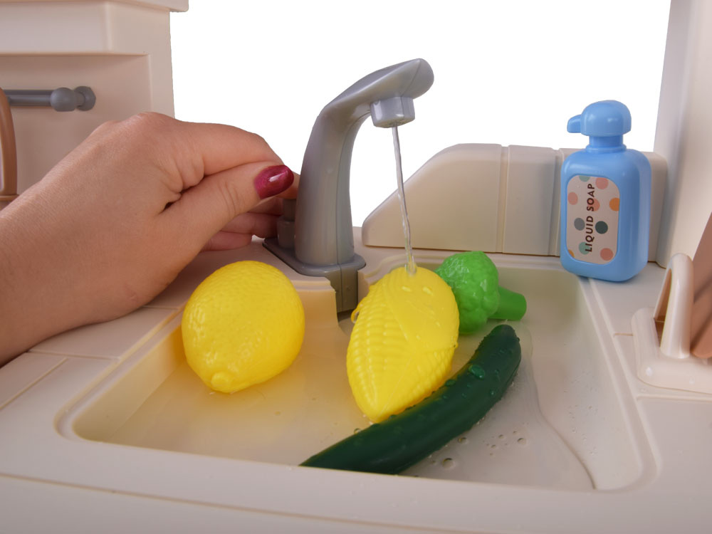 • Pompowany kran z wodą – po naciśnięciu można nalać prawdziwą wodę, jak w prawdziwym zlewie.