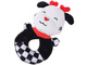 This adorable, smiling cow is a perfect choice for the youngest children from the very first months of life. The plush toy measures 16 cm x 10 cm x 6 cm and has been carefully designed with infants’ needs in mind. It comes in contrasting black-and-white colors with a checkered pattern. To make it even more eye-catching, the cow has a red heart-shaped nose, a red scarf, and little red horns that immediately draw a baby’s attention.