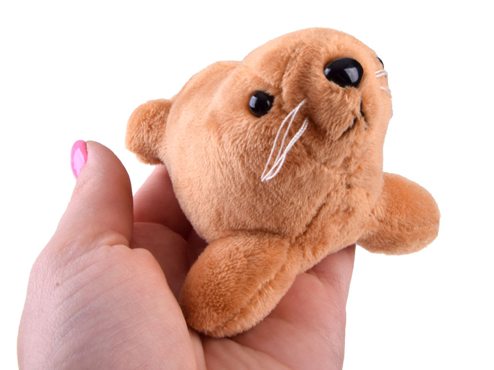 - Foczka - brązowy ssak z czarnymi oczkami i noskiem. Jej wymiary to 9 cm x 9 cm x 8 cm.