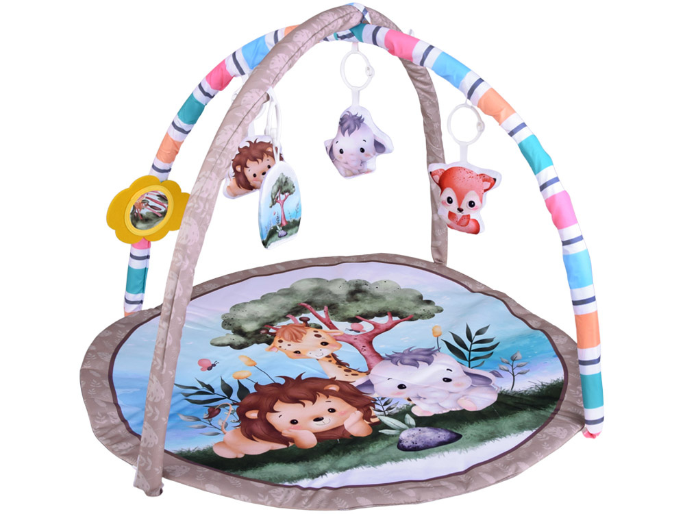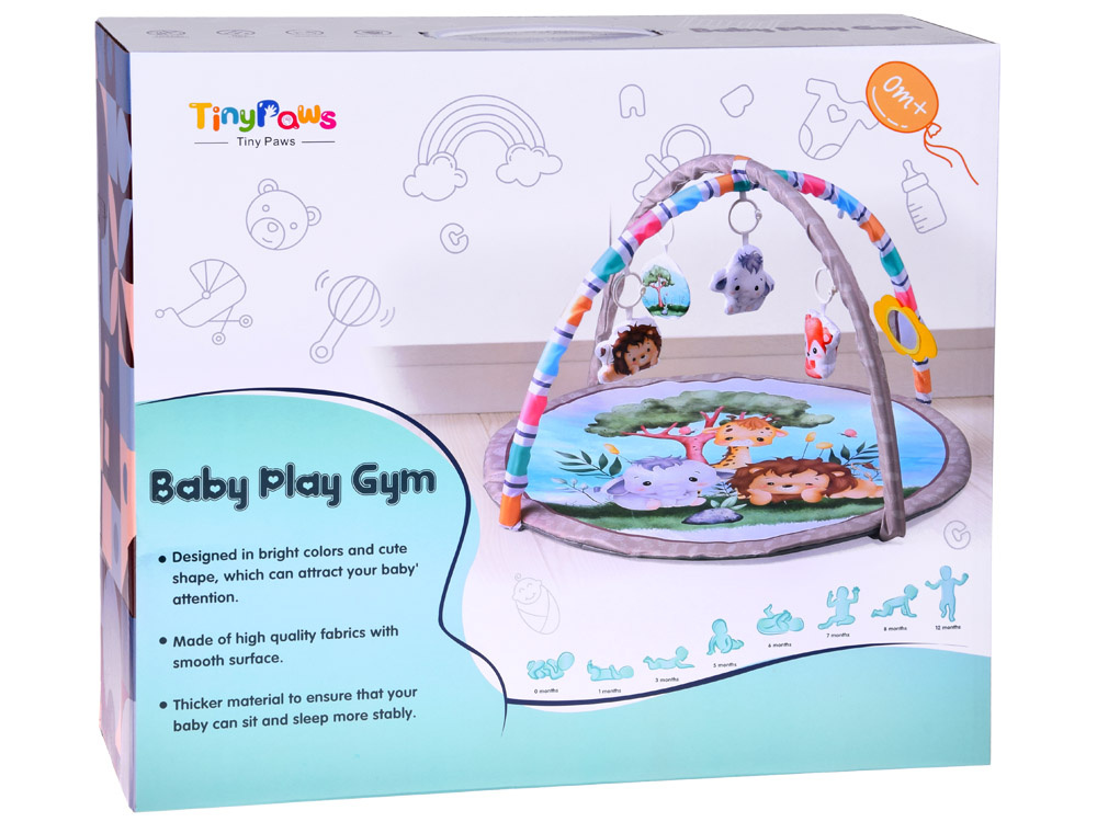 The “Happy Animals” Educational Play Mat grows with your child – from the first moments of observing the hanging toys, to crawling and sitting up.
