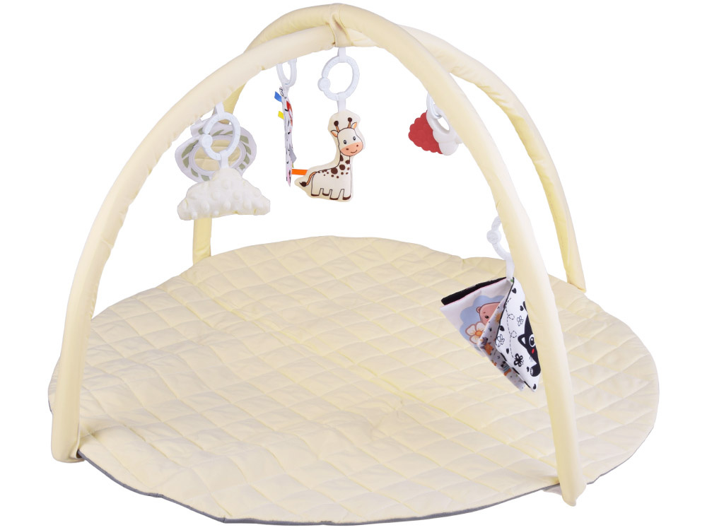 Two flexible arches with easy-detach functionality make it simple to prepare the mat for washing or fold it for travel. Hanging on the arches are a variety of toys that encourage activity and stimulate your baby’s senses.