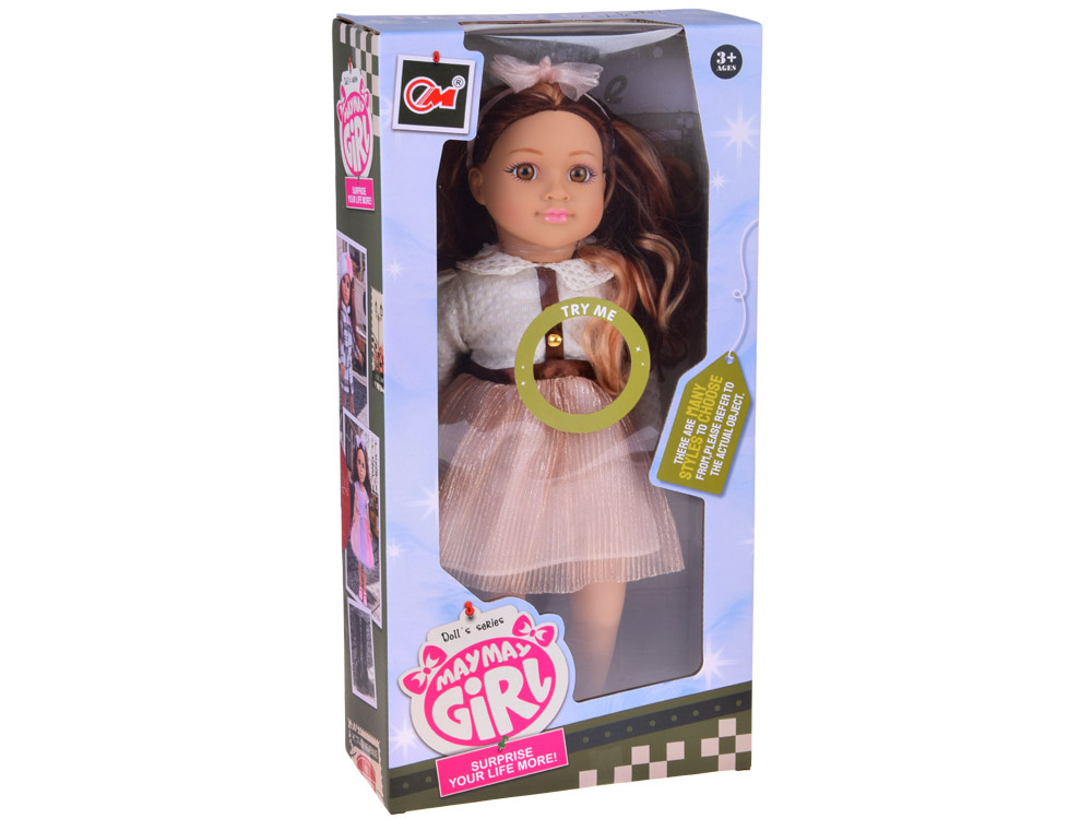 The May May Girl doll is a wonderful choice for every girl who loves fashion, styling, and creative play. Measuring 48 cm in height, she delights with her long brown hair, perfect for brushing and styling into a variety of hairstyles. Her large brown eyes with thick lashes and pink lips add charm and make her look incredibly realistic.