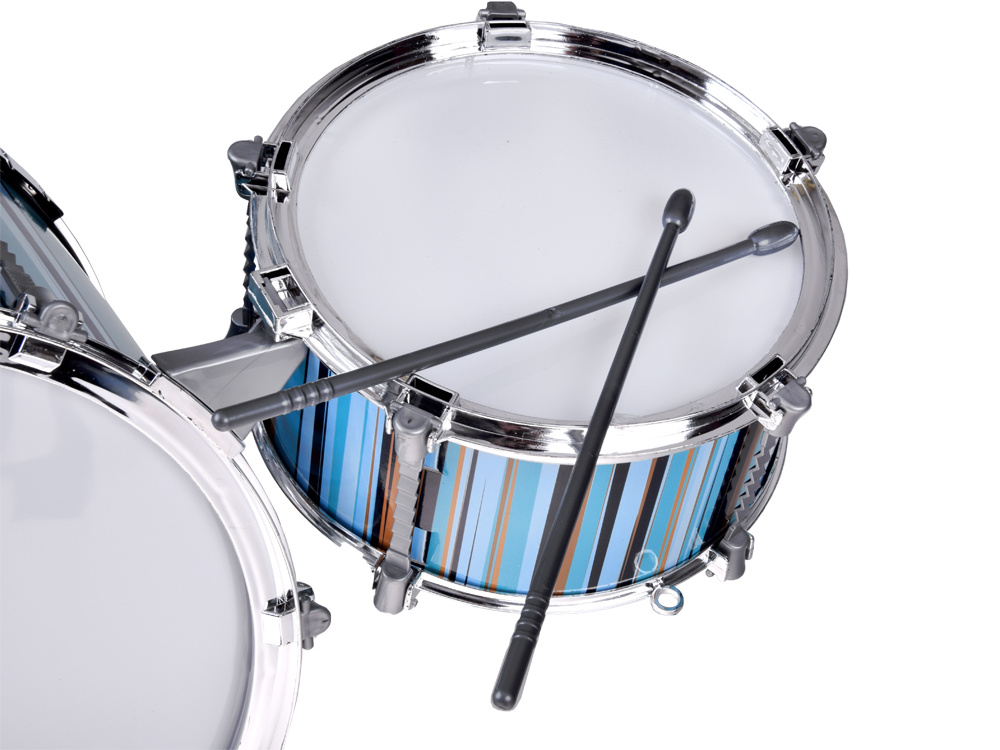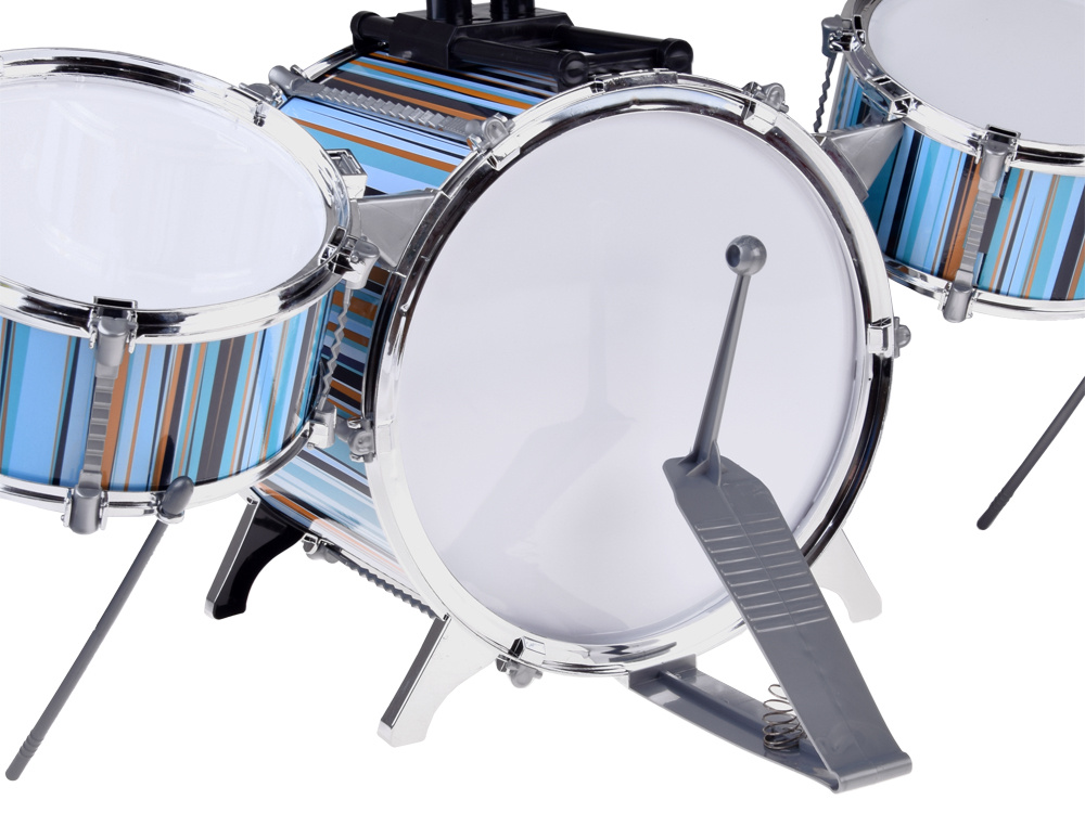 This drum set is an excellent way to introduce young children to the world of music and rhythm. With this set, kids can develop their creativity, fine motor skills, and sense of rhythm, all while having fun! The set has been designed for both girls and boys – the color scheme in shades of blue, turquoise, and brown with light accents makes the instrument visually appealing and encourages play.