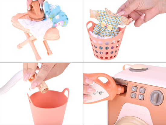 • Sound and light effects – the washing machine makes realistic washing sounds or cheerful melodies during play.