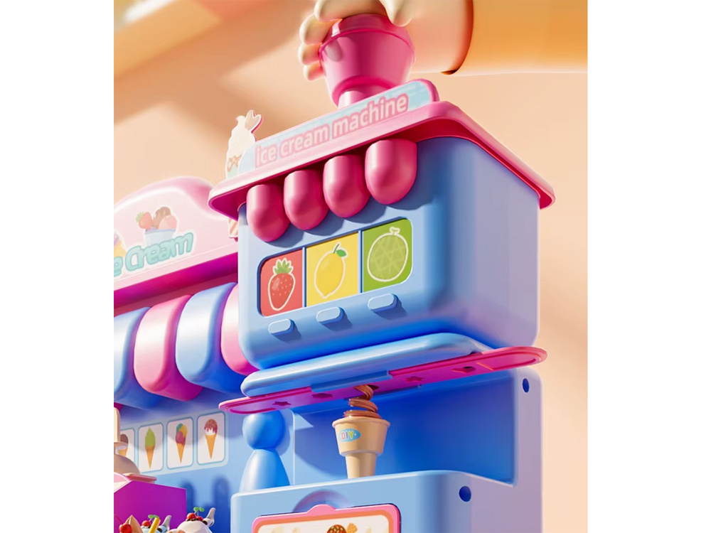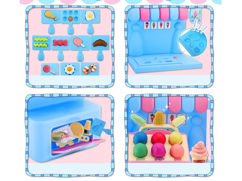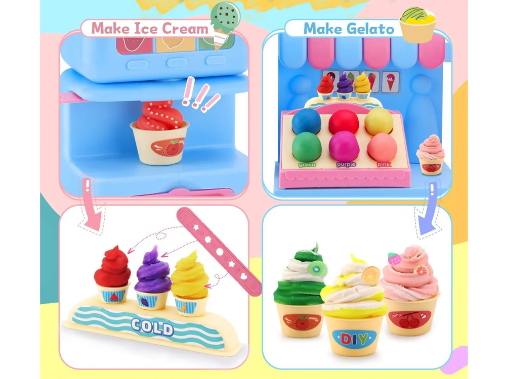 Ice Cream Machine – squeeze out whimsical ice creams and prepare colorful desserts. Finished treats can be placed in a special compartment, just like in a real ice cream parlor display.